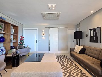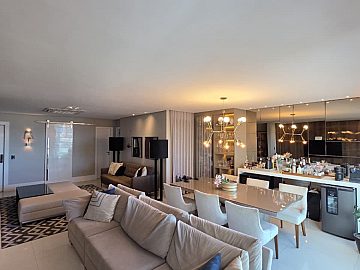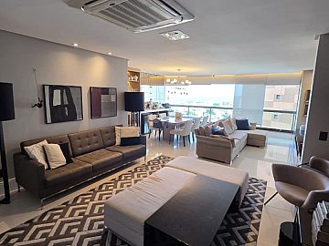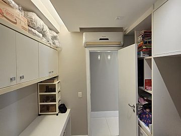 152m², 3 suítes, closet na master, escritório, lavabo, cozinha, dependência de empregada completa, andar super alto, melhor coluna do empreendimento com vista mar, nascente, 3 vagas de garagem soltas.