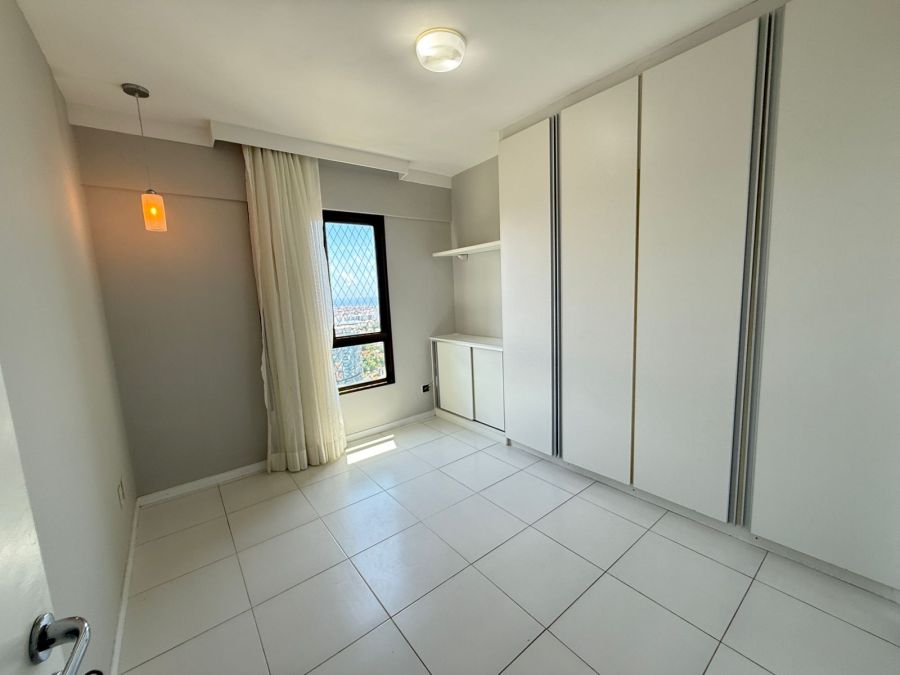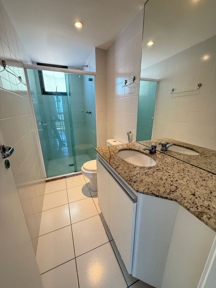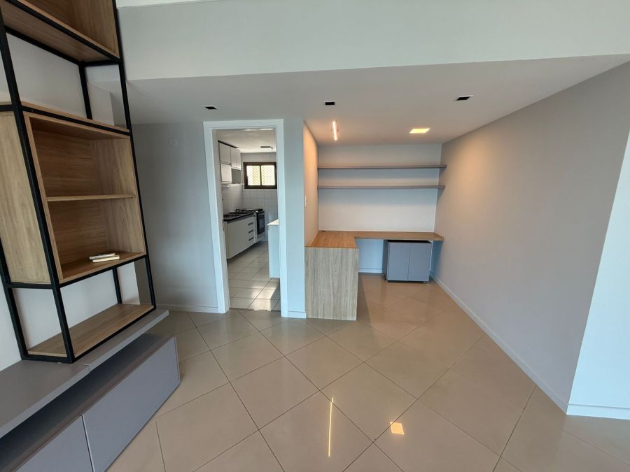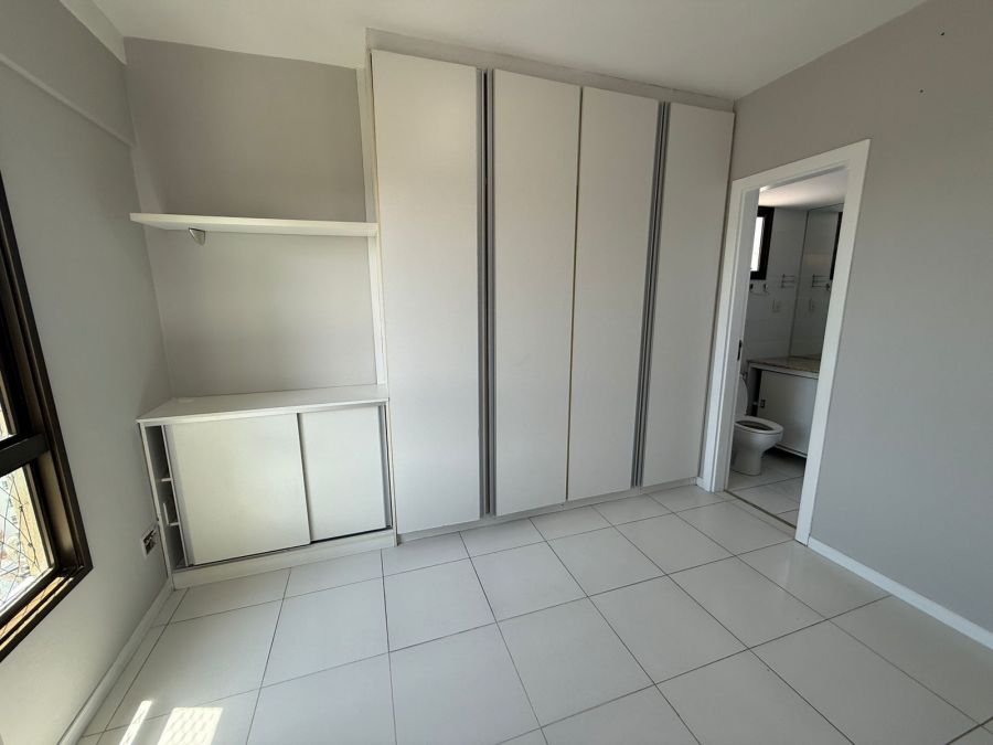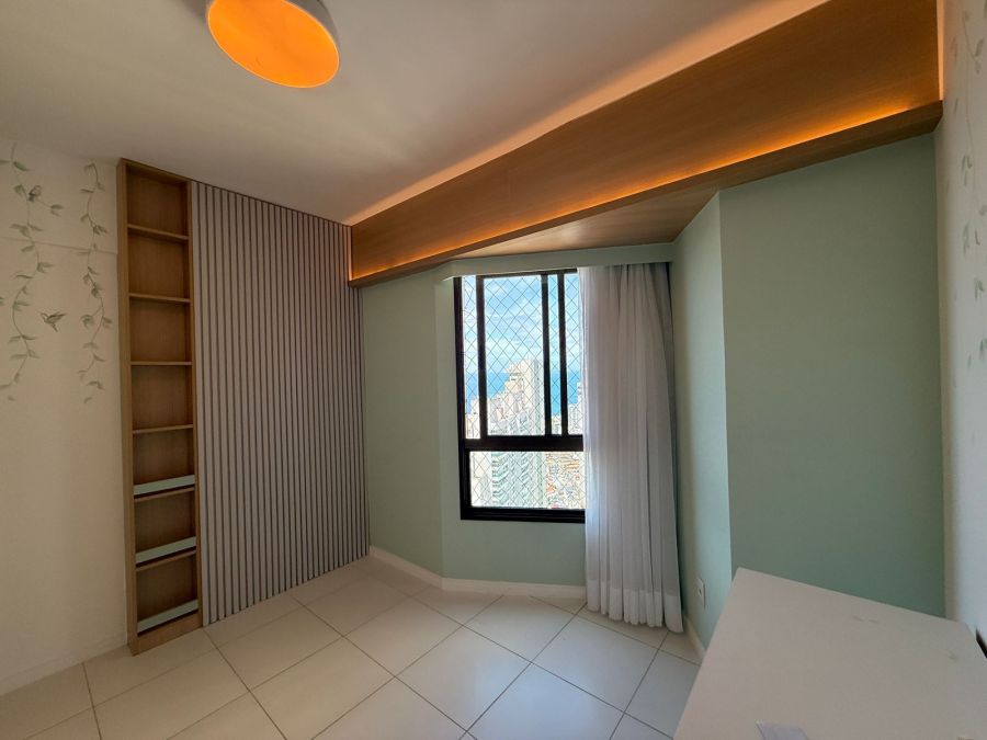 Apartamento 3/4 com 1 suíte, nascente, varanda com reiki e bancada de apoio, piso em porcelanato, teto rebaixado com iluminação indireta, armários em todos os cômodos, ar condicionado tipo split nos 3/4, área de serviço, dependência de empregada completa e 2 vagas de garagem.