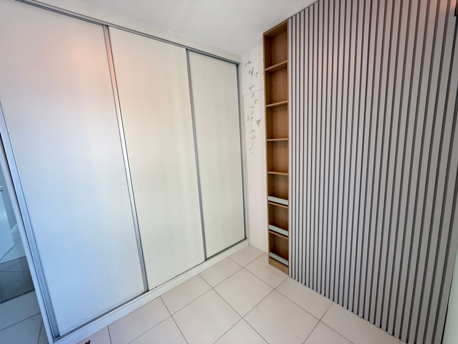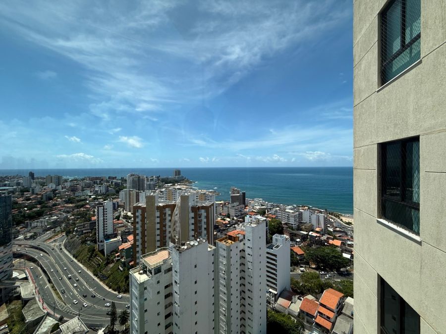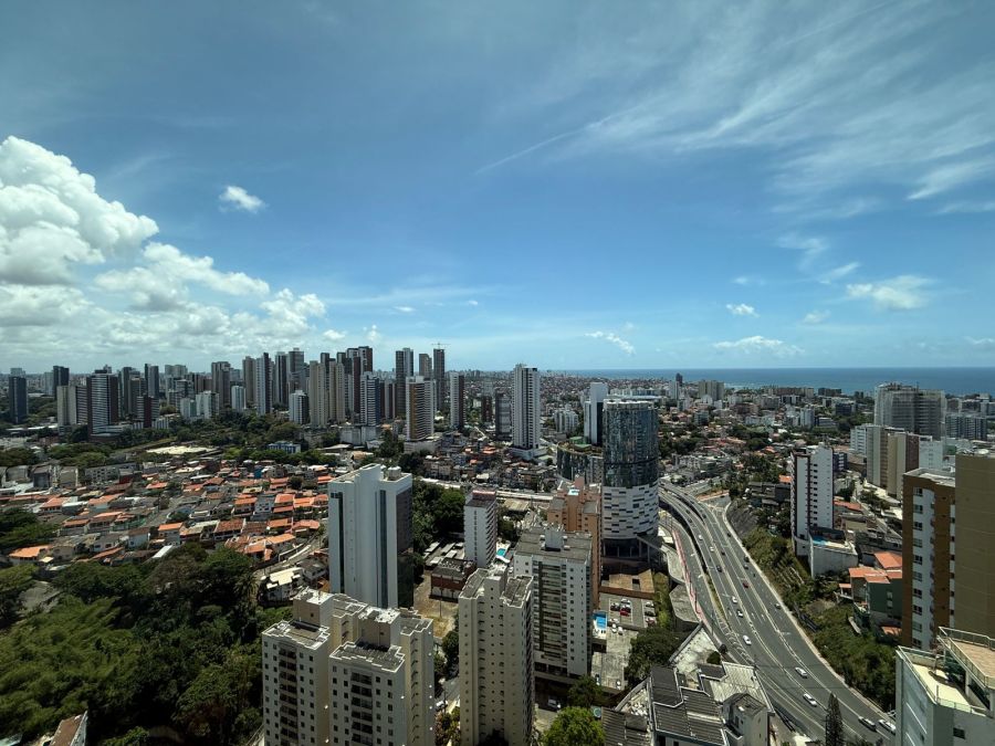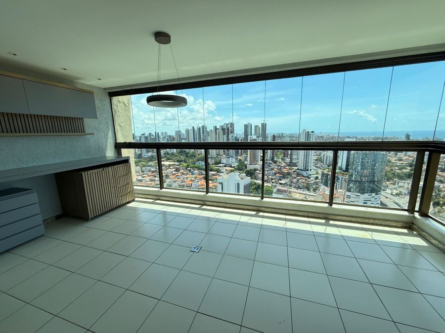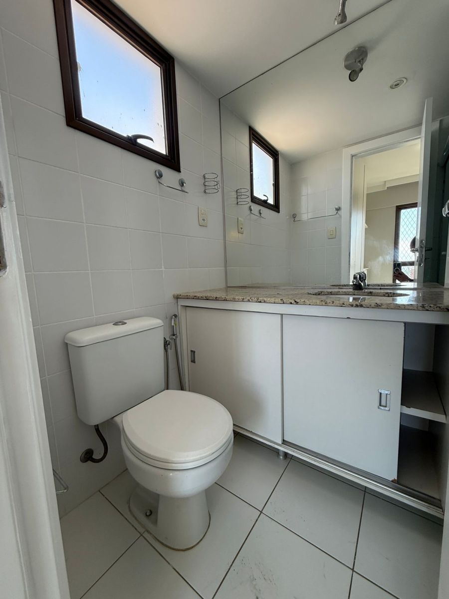 Apartamento 3/4 com 1 suíte, nascente, varanda com reiki e bancada de apoio, piso em porcelanato, teto rebaixado com iluminação indireta, armários em todos os cômodos, ar condicionado tipo split nos 3/4, área de serviço, dependência de empregada completa e 2 vagas de garagem.