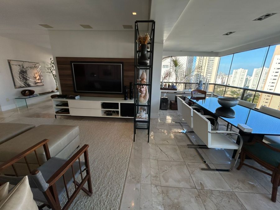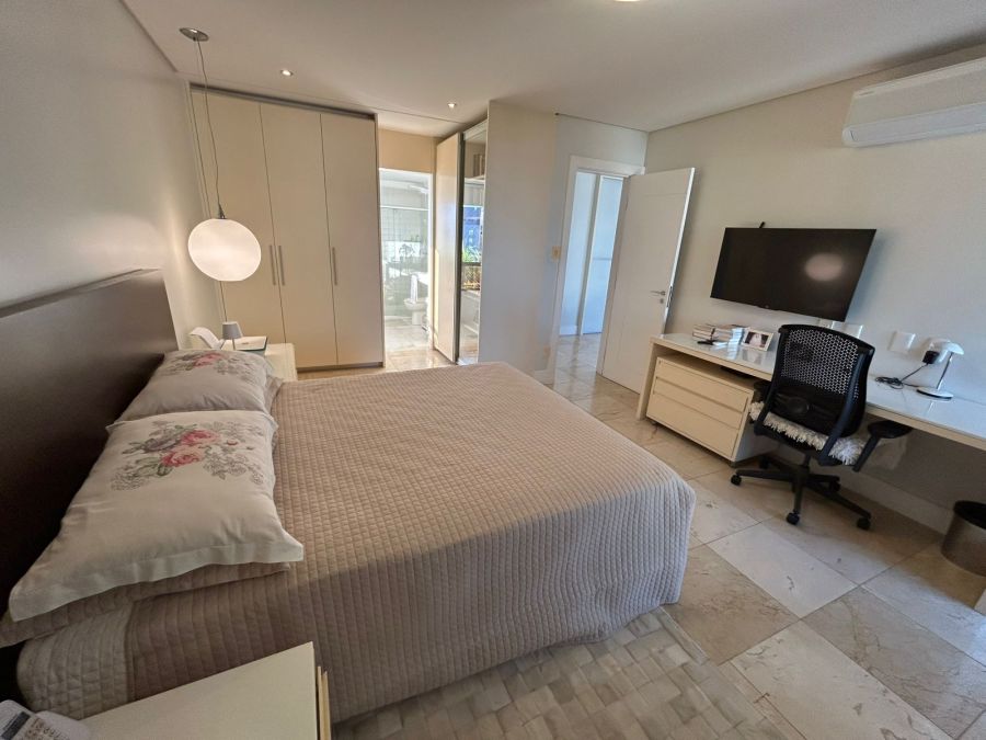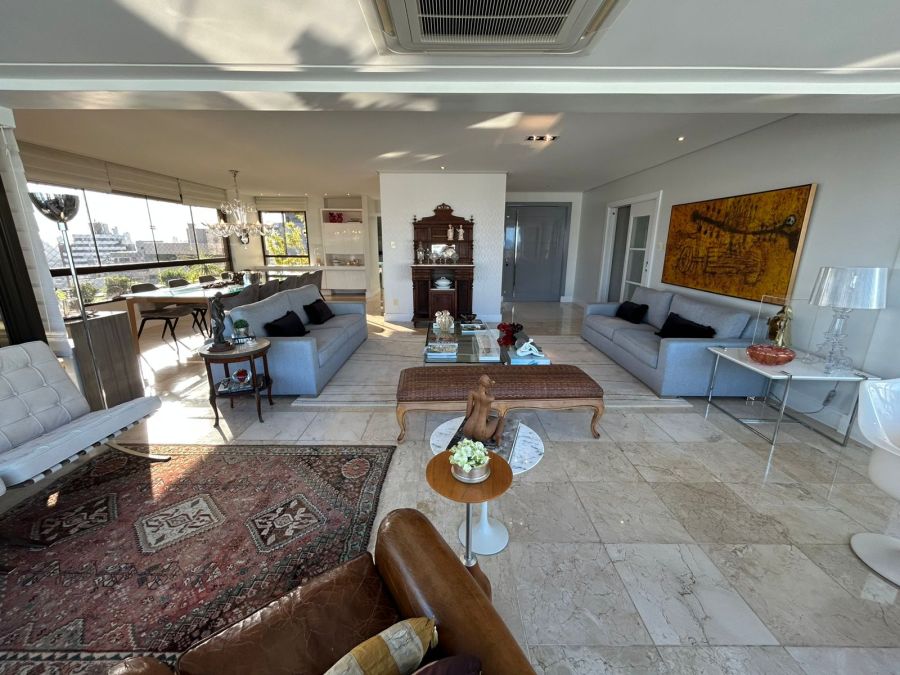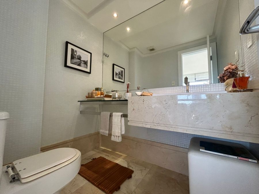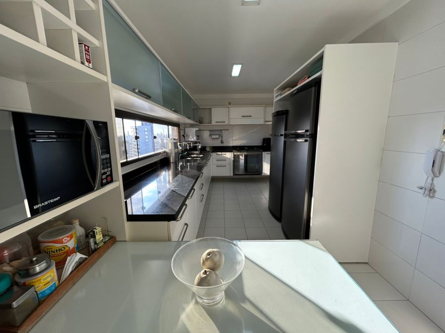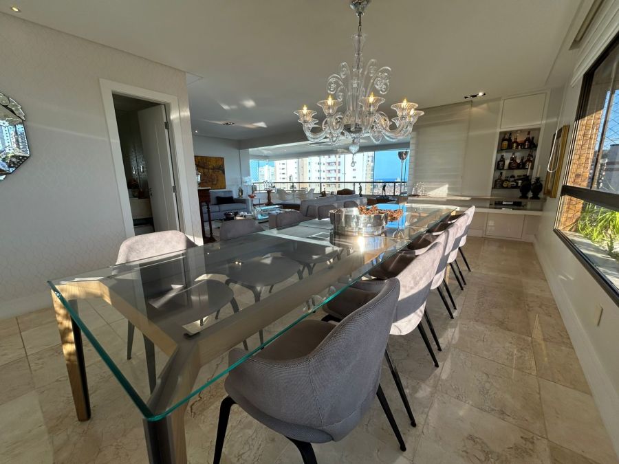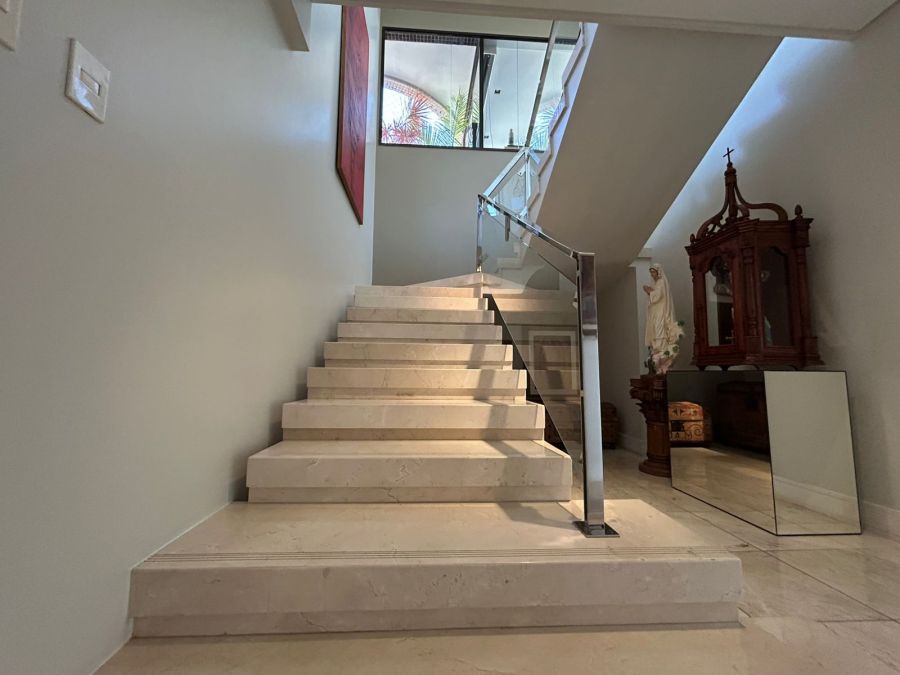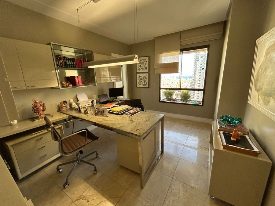 O imóvel conta com 4 suítes (todas no nascente), salas, varandas integradas, lavabos, dependência completa, 2 cozinhas, sendo uma de apoio para a área da piscina. Destaque para o pavimento superior com piscina, sauna e amplo espaço, ideal para lazer e contemplação do pôr do sol e vista de todos os ângulos da cidade.