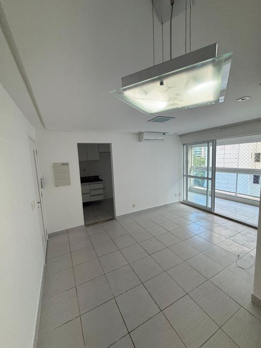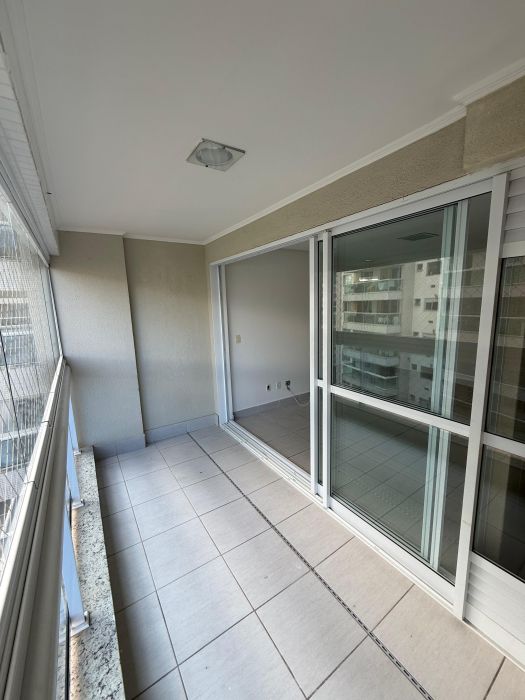 Apartamento com 78 m², 2 quartos (1 suíte), varanda com cortina de vidro, armários planejados em todos os ambientes e ar-condicionado instalado.