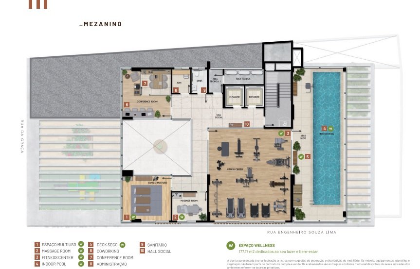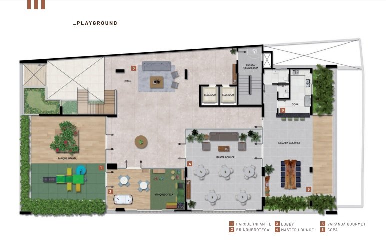 Áreas comuns entregues equipadas e decoras (taxa de implantação);
