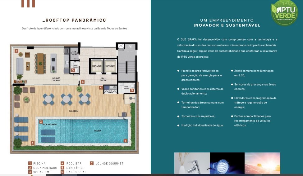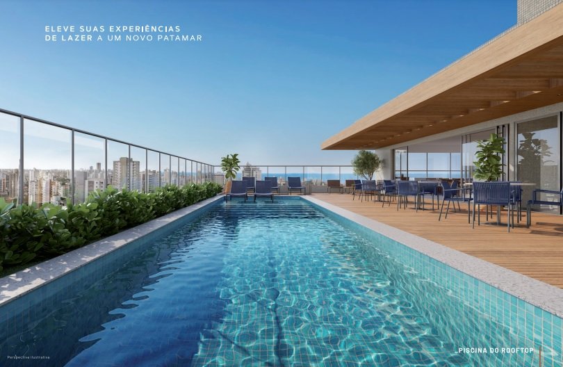 Infraestrutura de lazer com 2 piscinas, sendo uma coberta e rooftop panorâmico com vista para a Baía de Todos os Santos.